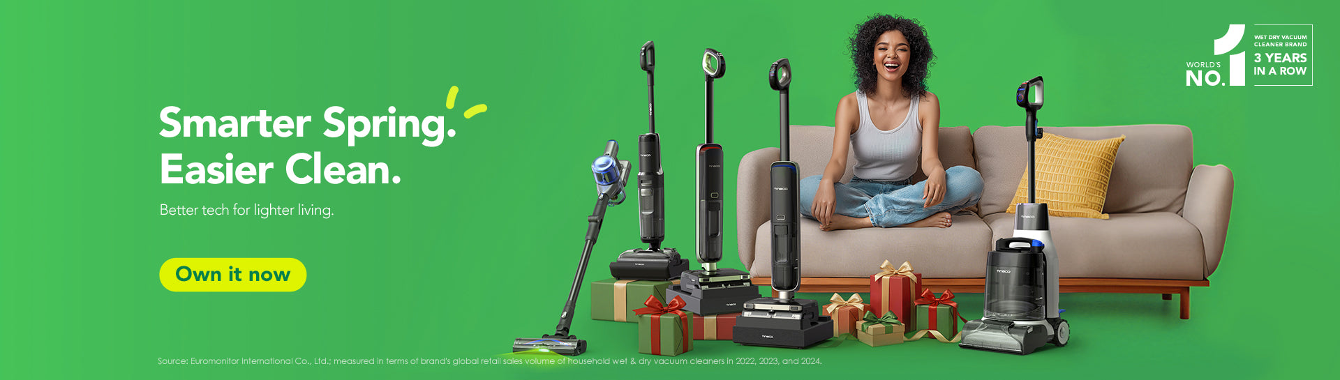 150AW Powerful Suction,ZeroTangle Brush,Up to 65min Runtime,6-Stage Filtration System,Tineco PureCyclone Technology,Wall-mounted Dock