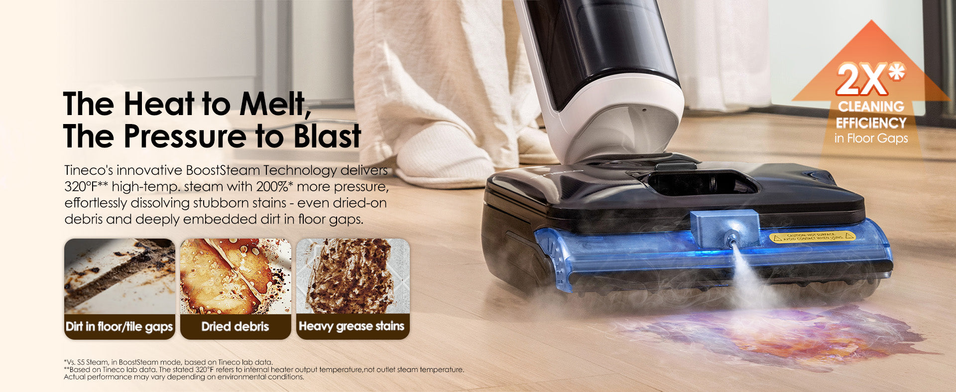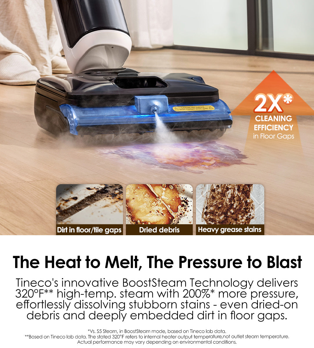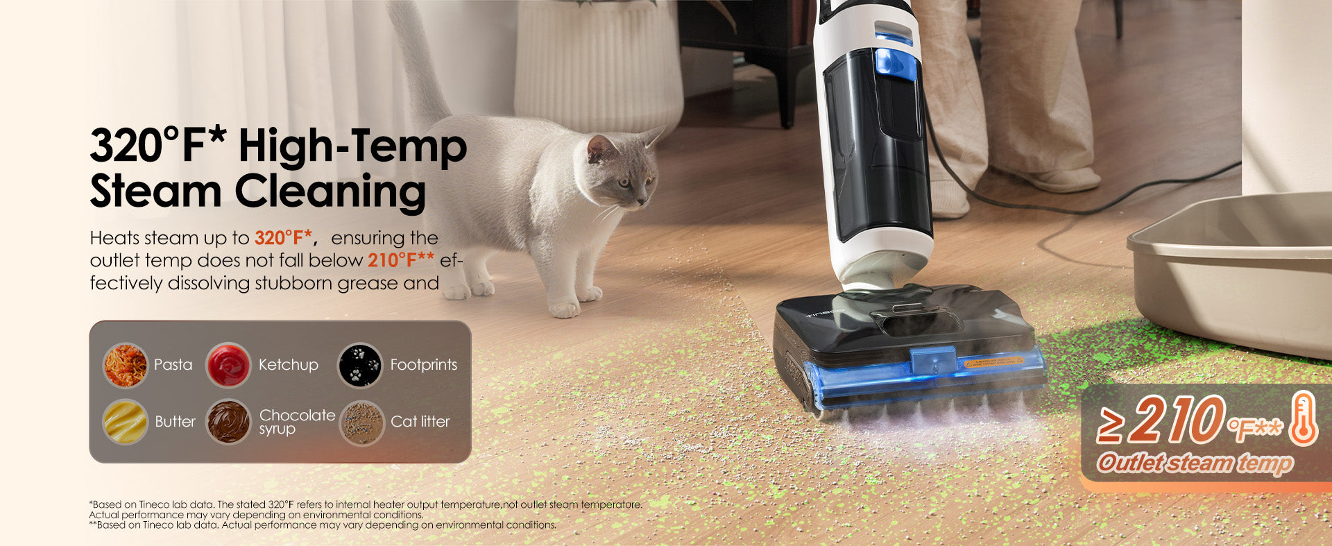 *Based on Tineco lab data. The stated 320℉ refers to internal heater output temperature,not outlet steam temperature.