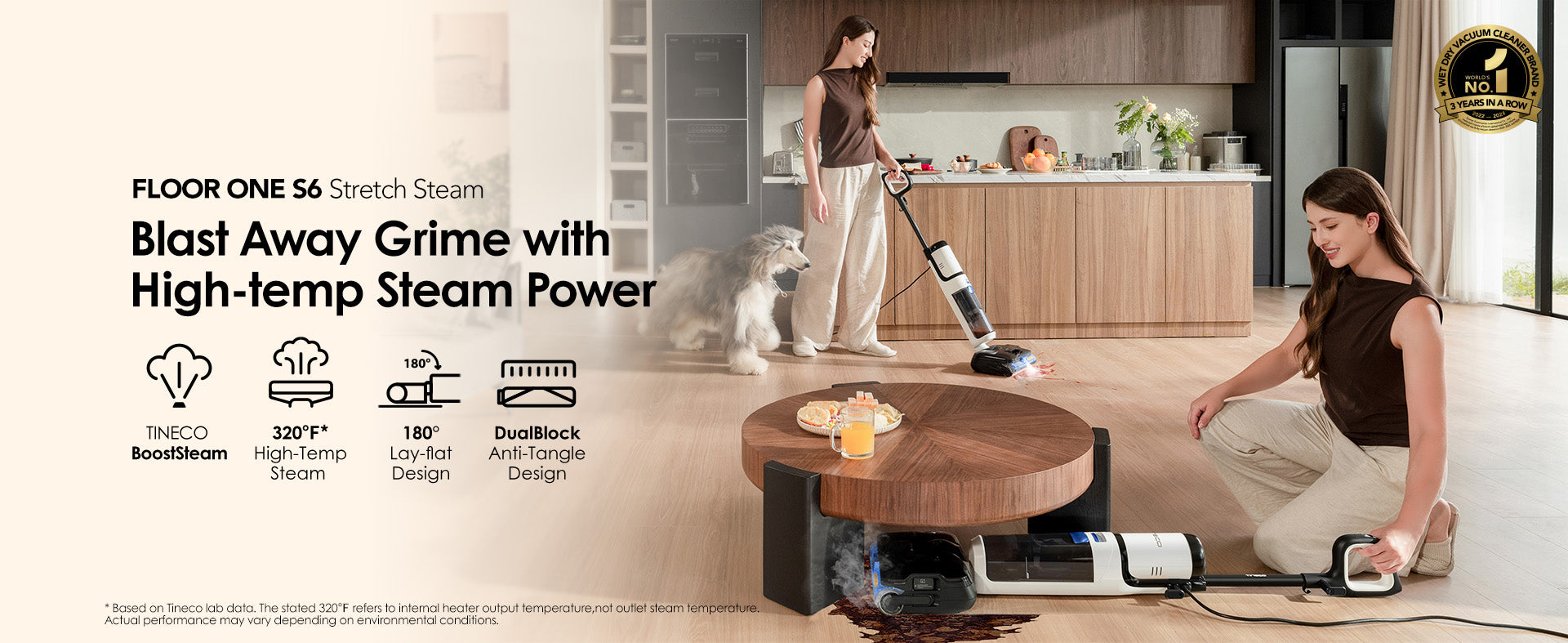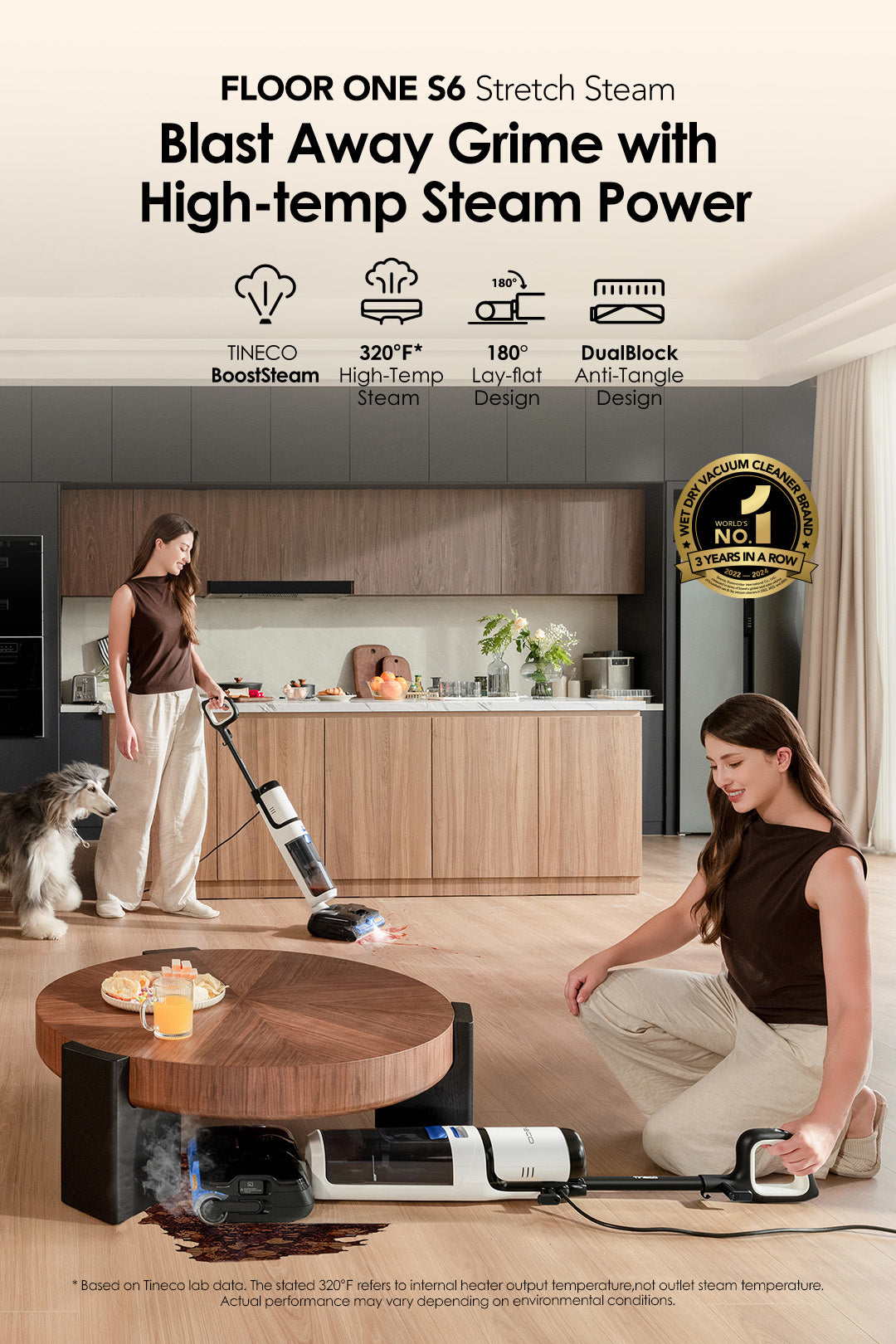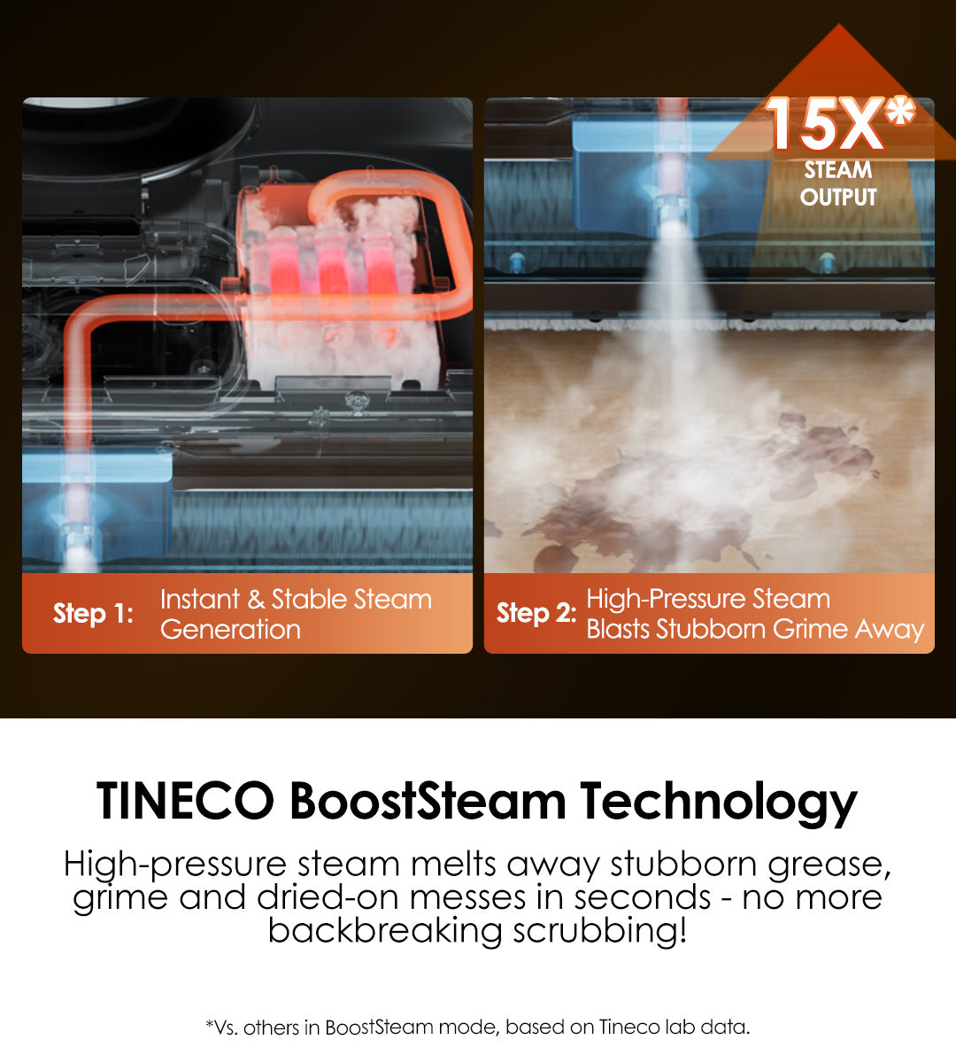 *Based on Tineco lab data. The stated 320℉ refers to internal heater output temperature,not outlet steam temperature.