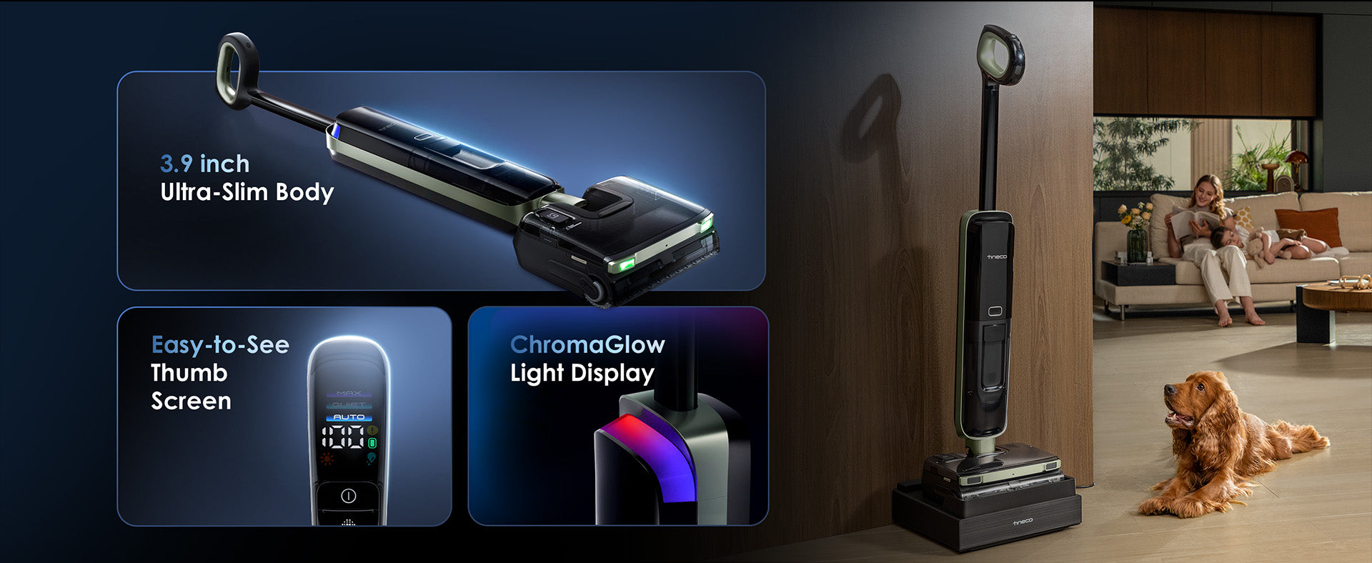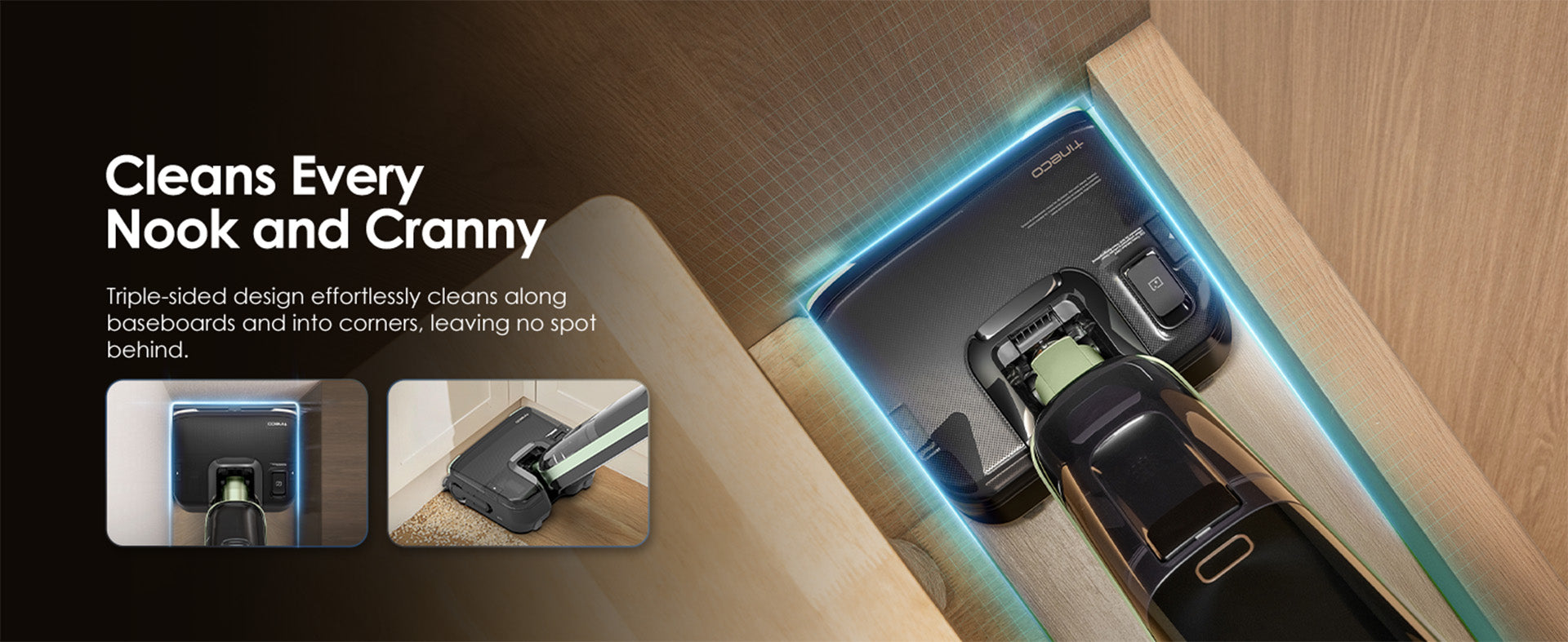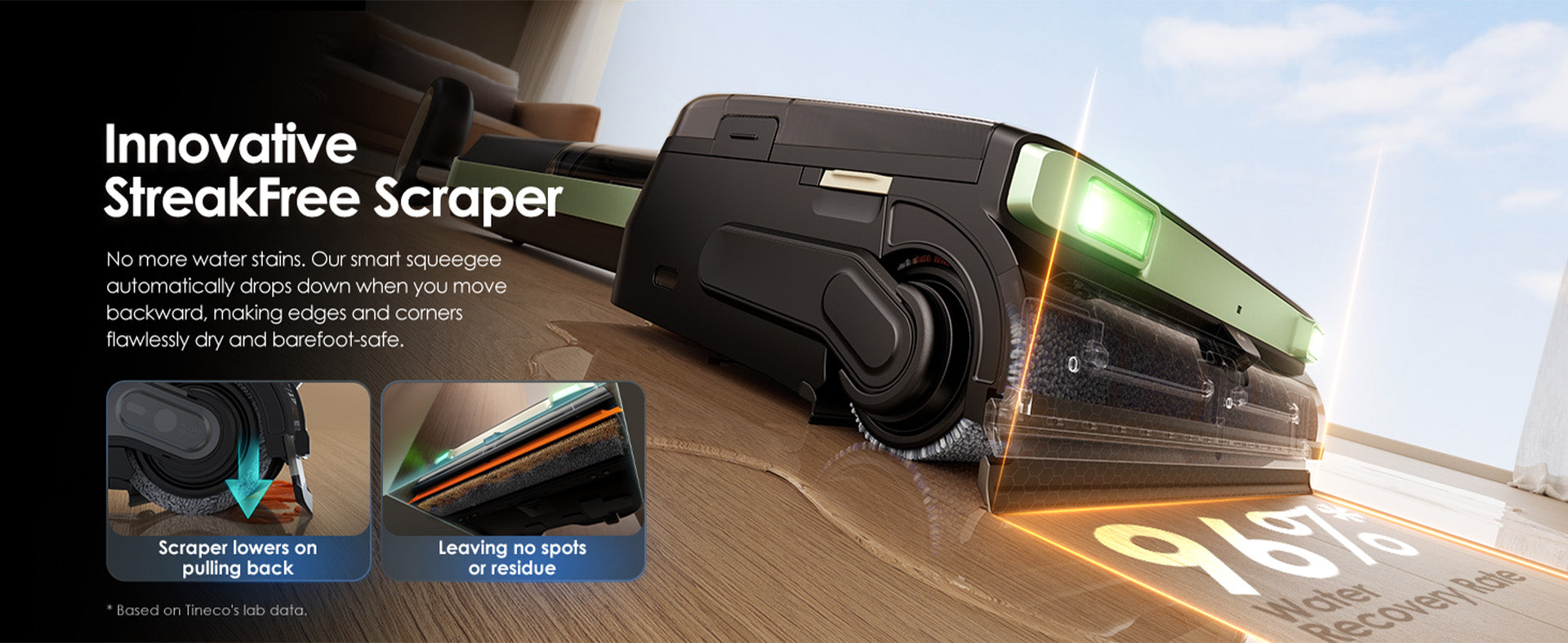 Self-cleaning with heated water & drying with 185℉ (85℃) hot air. Dual drying modes for every need. FlashDry Mode: 5min* SilentDry Mode: 40min* (*Based on Tineco's lab data.)