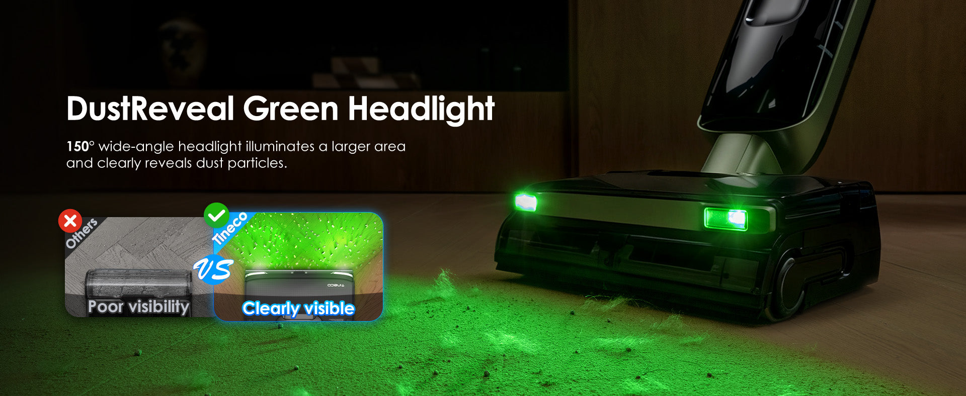 150° wide-angle headlight illuminates a larger area and clearly reveals dust particles