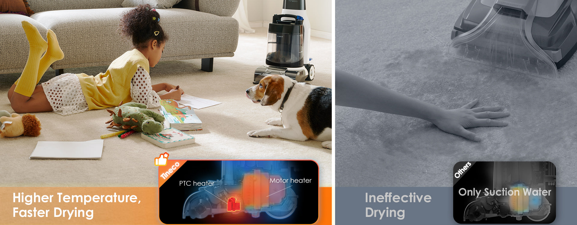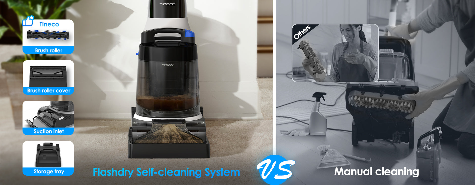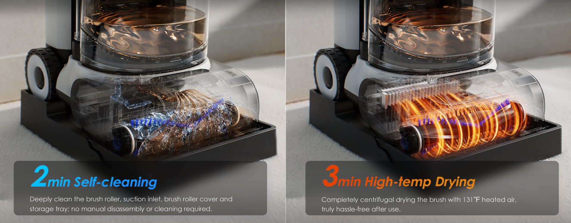 Using heated fresh water to dissolve stubborn stains from the pipe to the brush roller, then 185°F hot air to dry every part—equipped with hepa filters, a good filtration system, and a removable dirty water tank as key extra features, making it great for cleaning with zero post-use hassle.