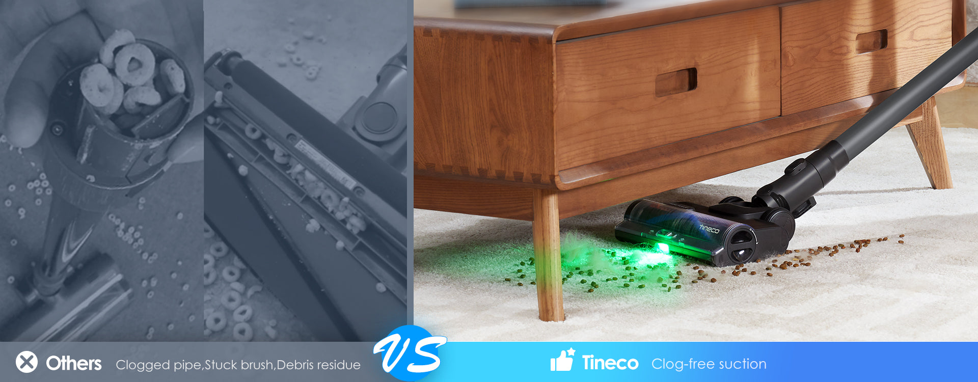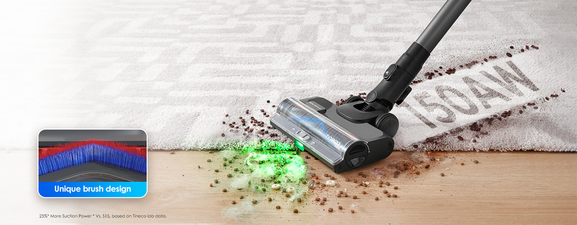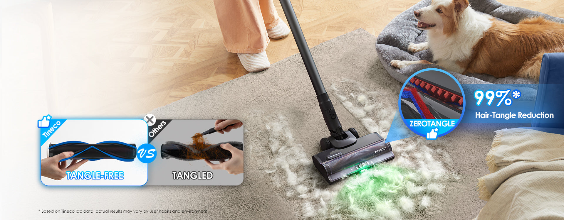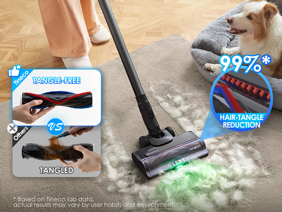 Effectively tackles hair messes and captures pet fur without tangling, ensuring a smooth and efficient cleaning experience with a 99%* reduction in hair tangles.* Based on Tineco lab data, actual results may vary by user habits and environment.