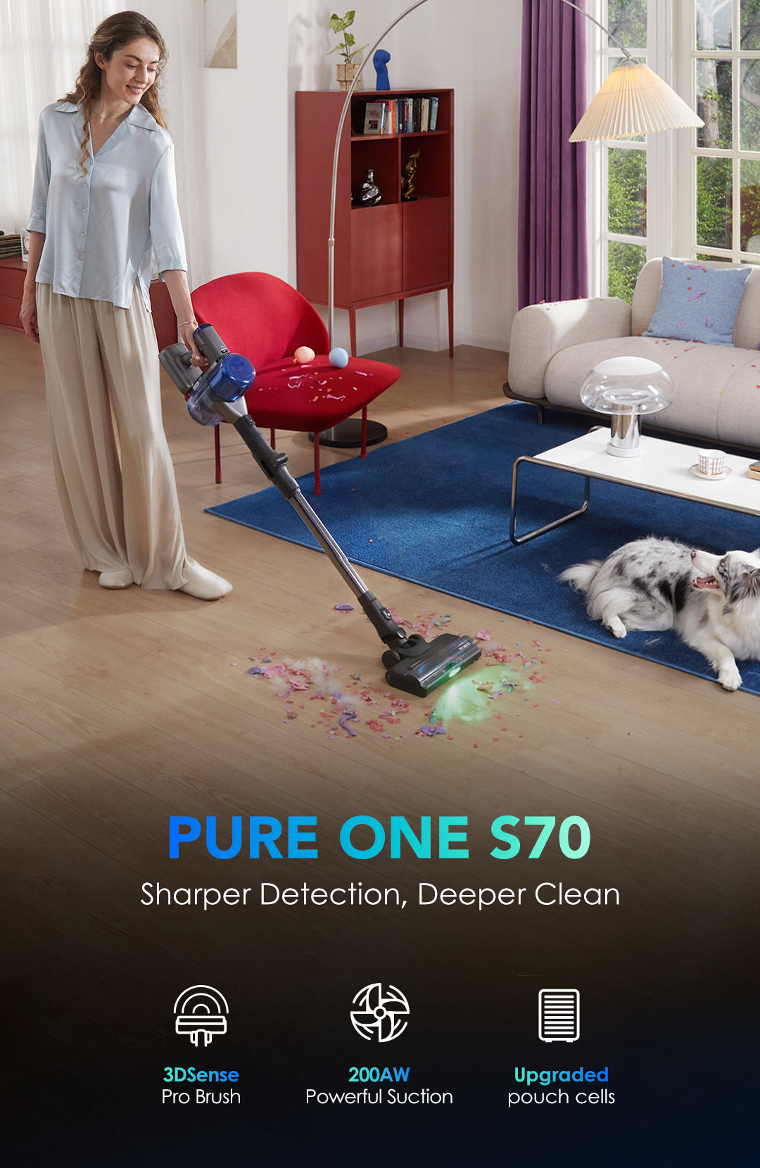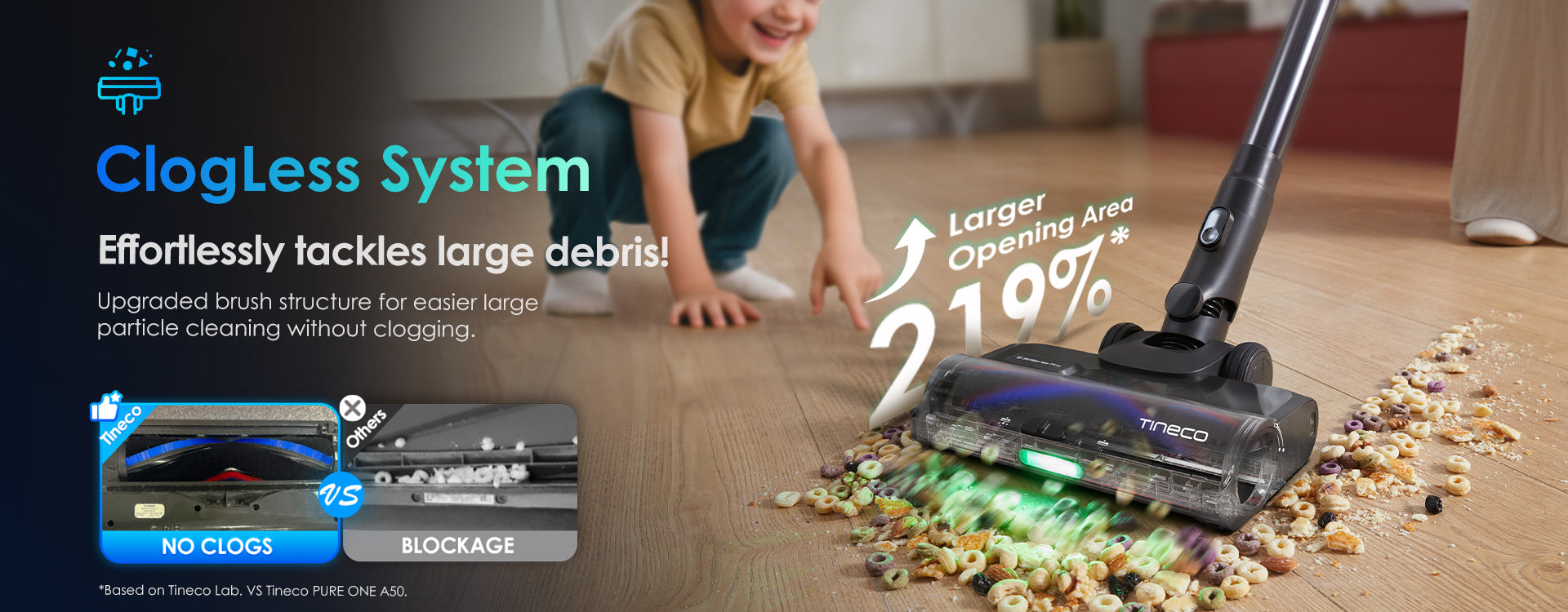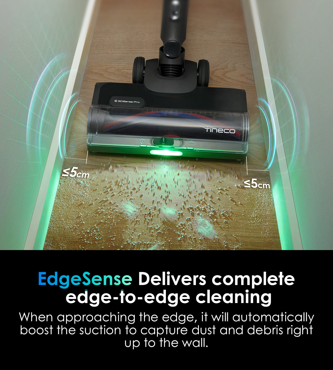 DustSense:Precise suction with real-time dust detection and automatic power adjustment based on dust volume.LightSense:150° wide-angle headlight illuminates a larger area and clearly reveals dust particles as small as 0.02mm.EdgeSense:Edge-to-edge cleaning with automatic suction boost near walls.ClogLess System:Upgraded brush and 219% larger suction inlet area for clog-free large debris cleaning.