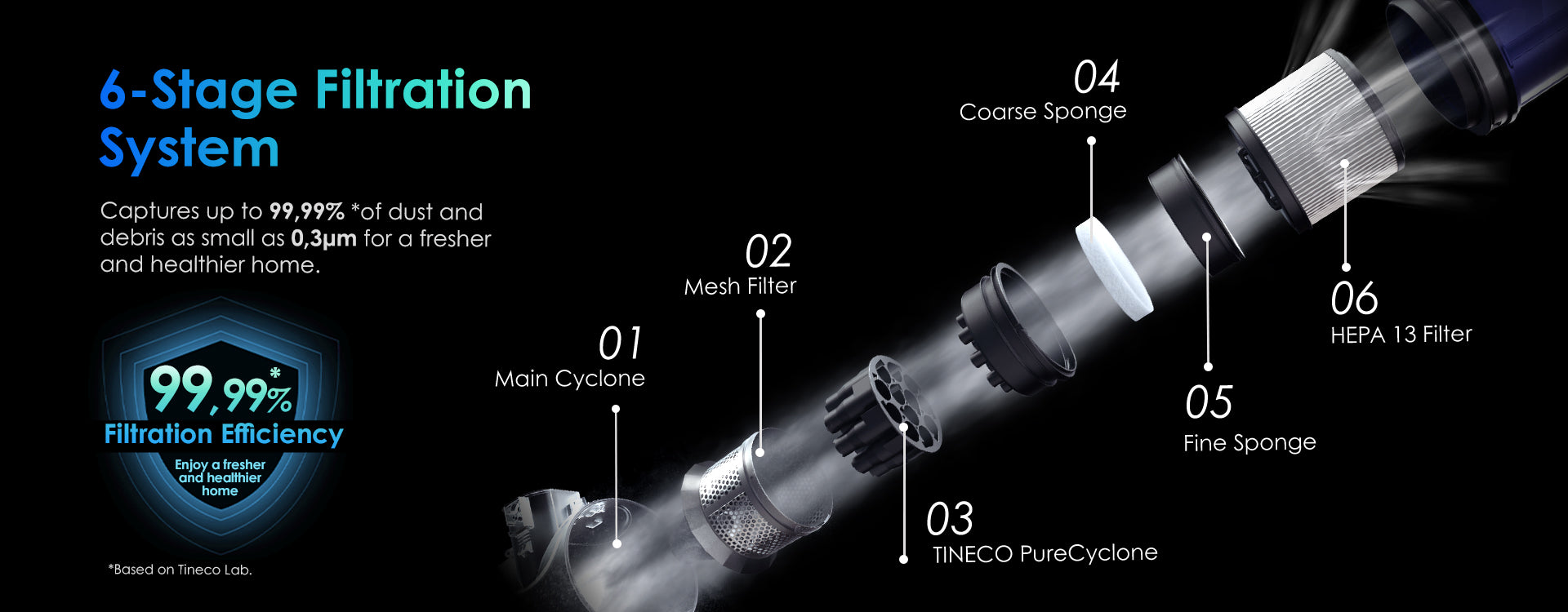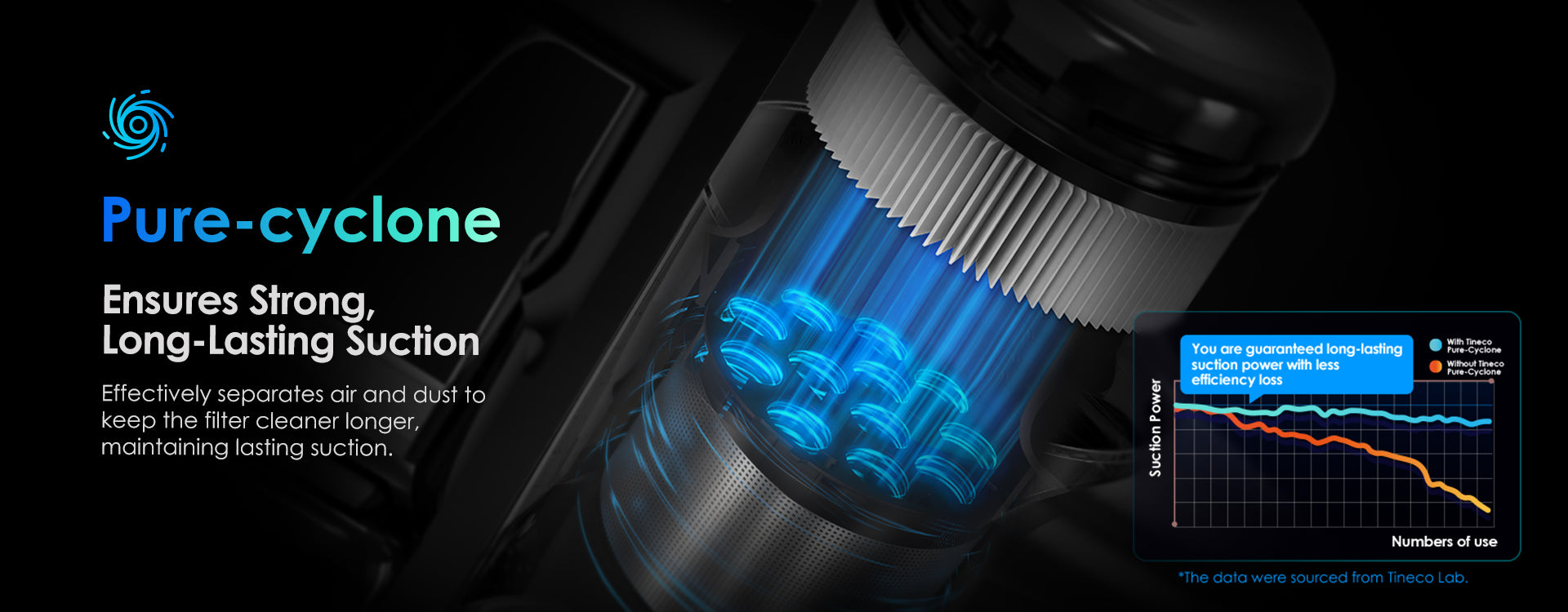 Ensures strong, long-lasting suction by effectively separating air and dust, which keeps the filter cleaner for an extended period