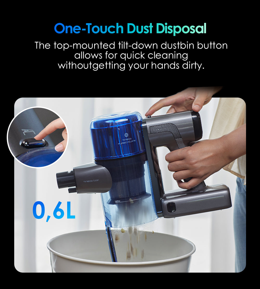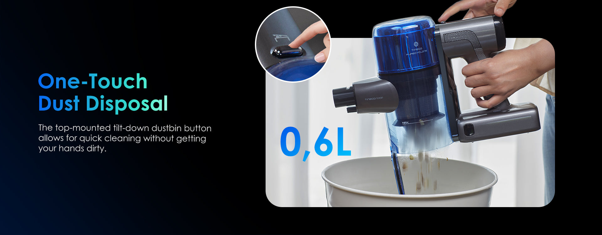 Effectively separates air and dust to maintain strong, long-lasting suction.